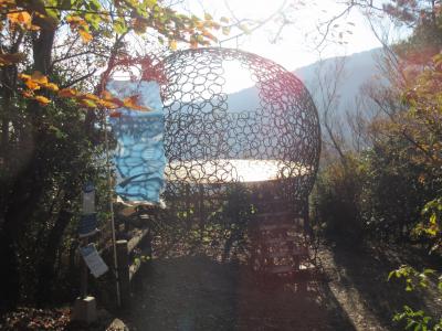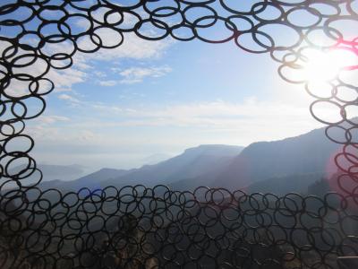 国道436号線沿いに南風台という見晴らし台があります。そこからどこに行けば希望の道があるのか、無いのか案内板がなかなか見つからず迷いました。小さくて醜い案内板があって、付近の草むらをかき分けて下りるといった感じの、狭くてわかりにくい道を下っていくと、たどり着きました。小雨が降っていて滑りやすいという不安もありました。