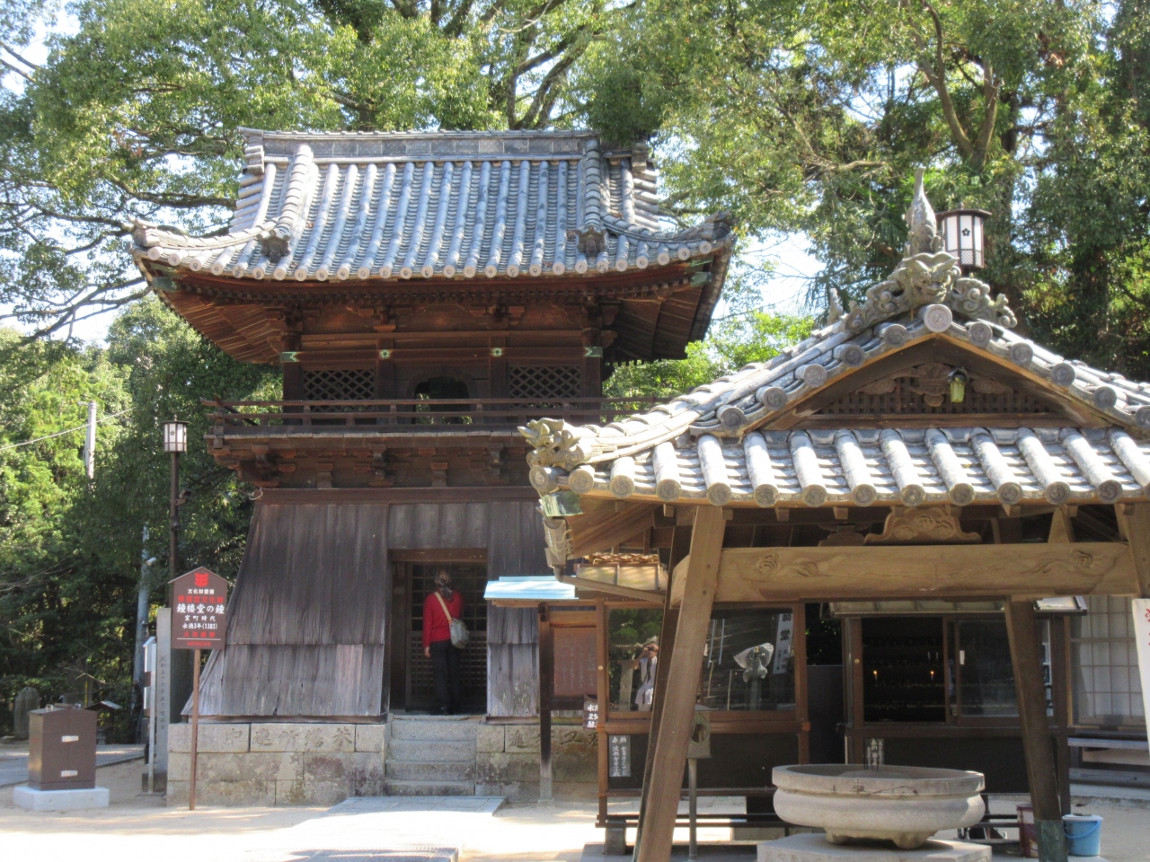 仁王門と別にある鐘楼堂の鐘は室町時代の1383年(永徳3年)のもので、下からひもをひいて、鐘を突く仕組みになっています。
