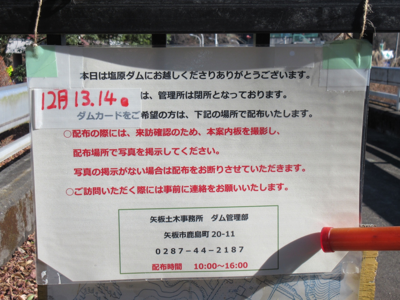 ゲートの貼り紙を見ると、はるか遠くの矢板市にある矢板土木事務所でもらえるとのこと。