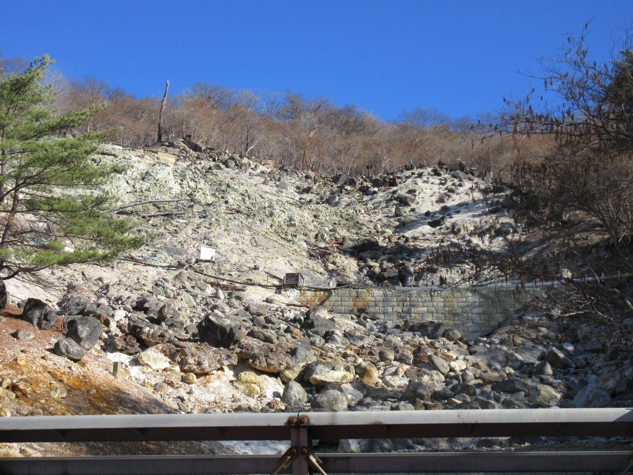 塩原温泉郷から、日塩もみじラインを鬼怒川方面に向かって4㎞位登ったところにある温泉地です。もっと下にある奥塩原温泉元湯が江戸時代にお湯が出なくなって、その後、こちらの噴火口からお湯が出たことで新湯温泉と名付けられたそうです。