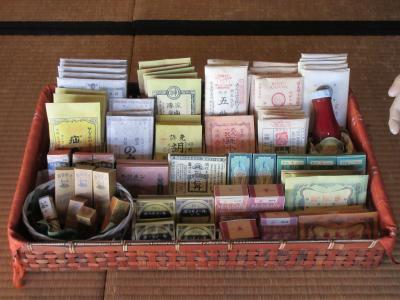 並んでいるレトロな薬袋も昔の本物のように見えます。その横に「PAyPay」の札を見て、「ああ、そうだ、ここは有料の博物館なんだ」と気づきます。