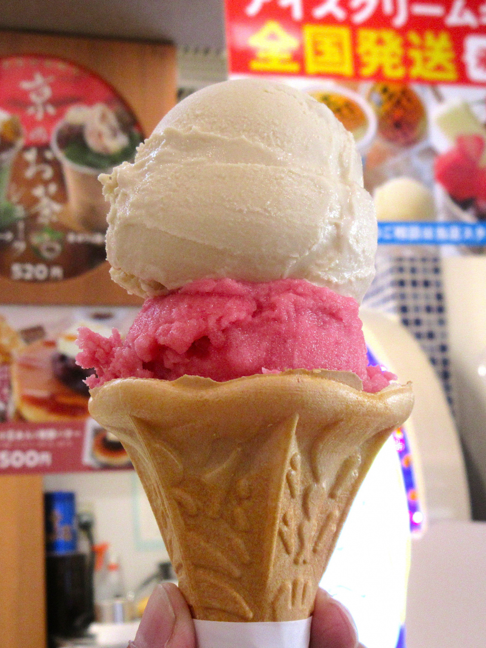 ほうじ茶とやまもものアイスのダブルをいただきました。450円は安い!