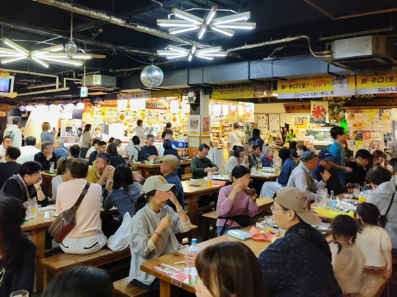日曜日のひろめ市場は非常に混んでいて、安兵衛も1時間弱の待ち時間でした。