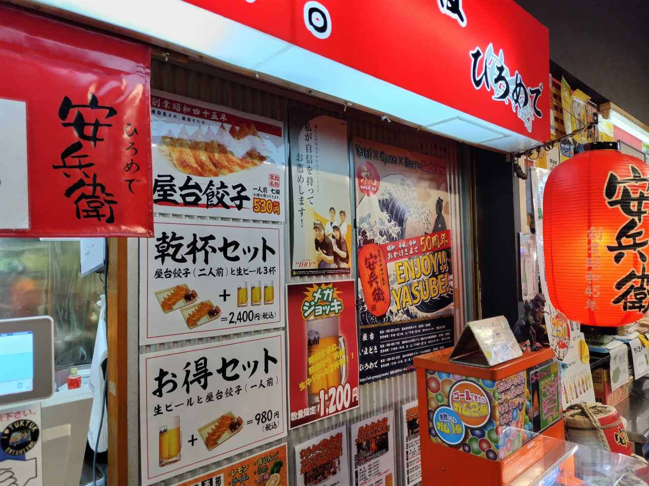 高知で4連泊中のホテルの裏にある屋台安兵衛のせいで寝付けなかったという縁がありました。でも、一度安兵衛の餃子を食べてみたいと思っていたので、ひろめ市場の店でいただきました。