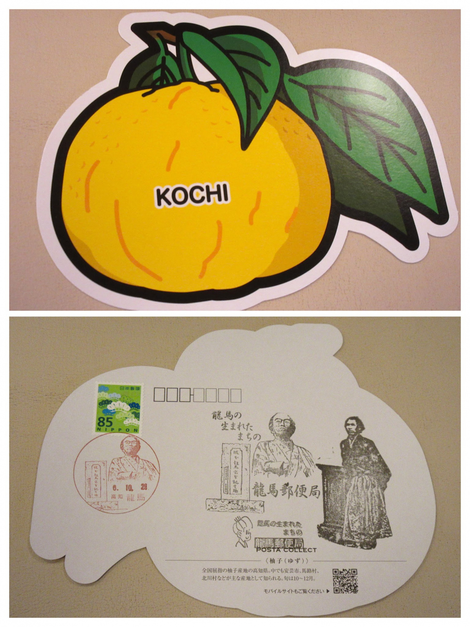 「ゆず」型を選び、オリジナルスタンプを押すときに、失敗しそうなので局長さんにお願いしました。投函できるそうですが、持ち帰りました。- 旅行時期