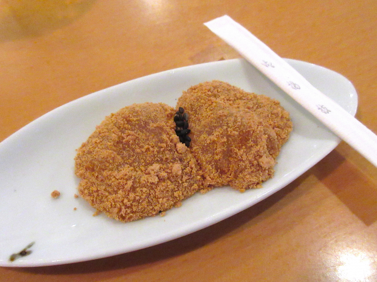 食前に出てきた「わらび餅」は、黒ゴマがちょっと乗っていて、新しい食感と風味で、気がきいていました。