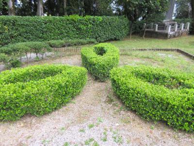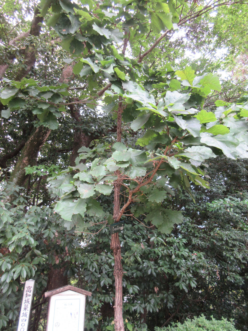 今まで何度か追手門から入ってそのまま上りましたが、今回はあえて、北東側から登りました。人も少なく家紋の「三つ葉柏」由来らしい柏の木や生け垣があります。