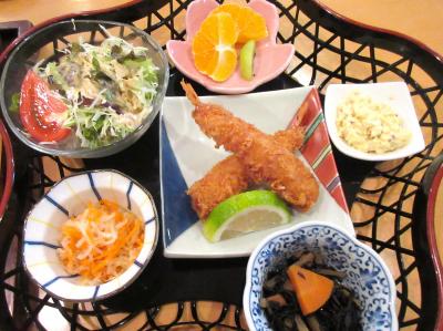 二の膳は、エビフライ(タルタルソース)、小鉢4品。