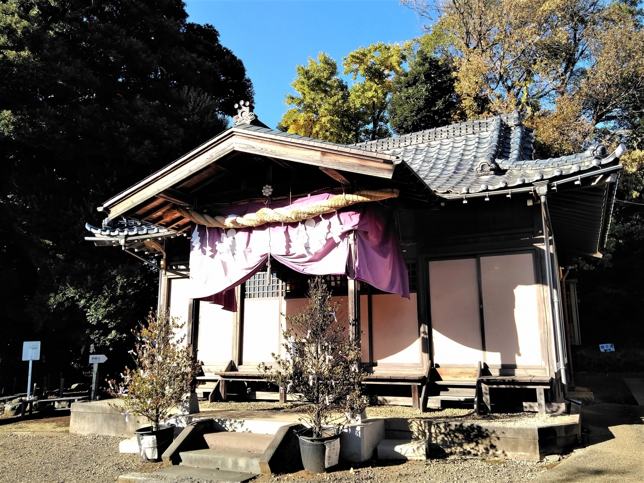 安行桜が有名ですが、秋に山門の前で真っ赤な紅葉を見つけました