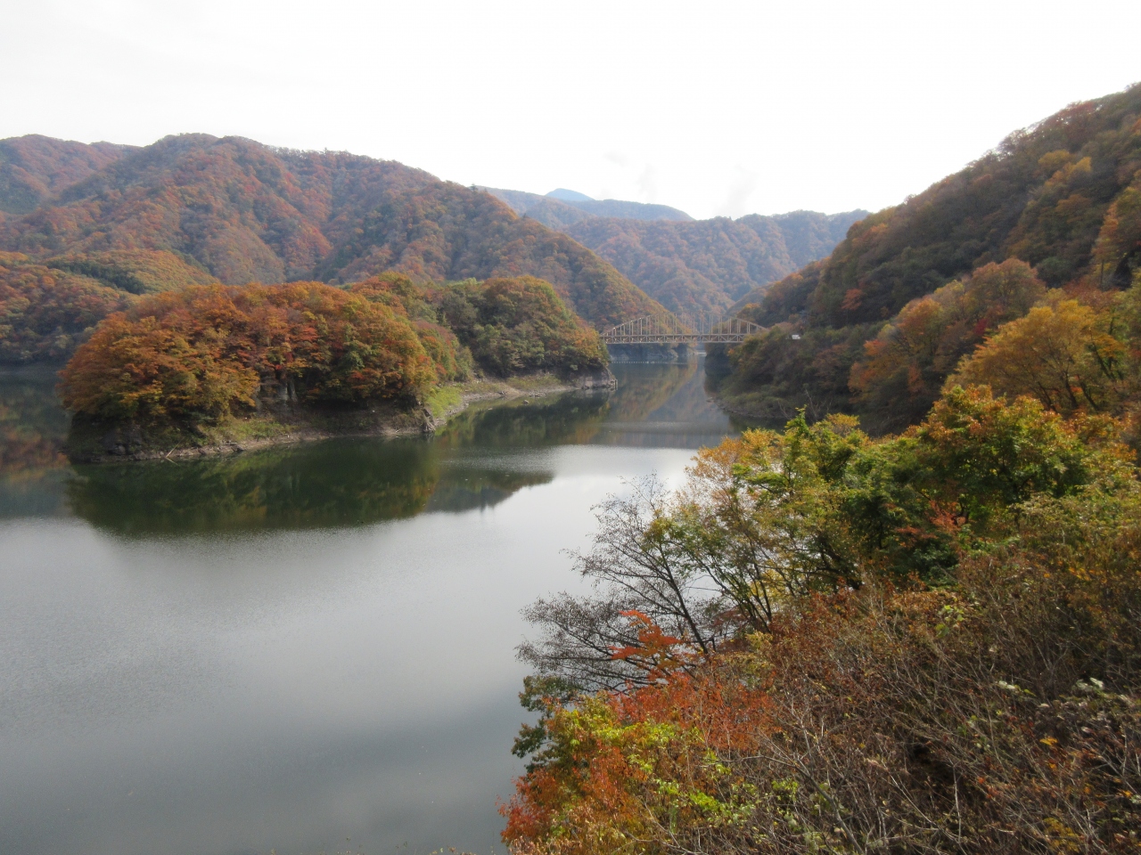 次に「海尻橋」から見た五十里湖と周辺の紅葉が綺麗でした。