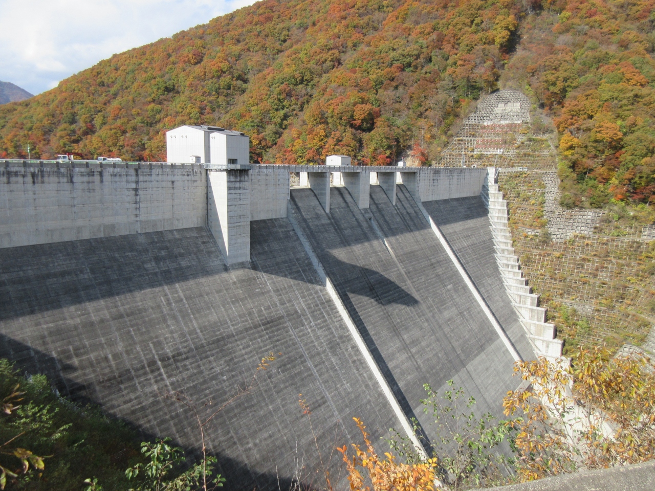 最初に「わくわくダムダム資料館」のところからダムと、五十里湖が見えました。