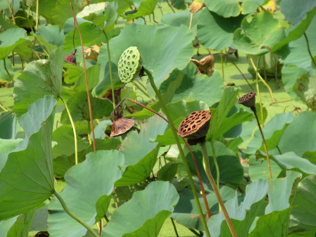 池の『古代蓮』は、もう花は終って、たくさんの実がついていました。- 旅行時期