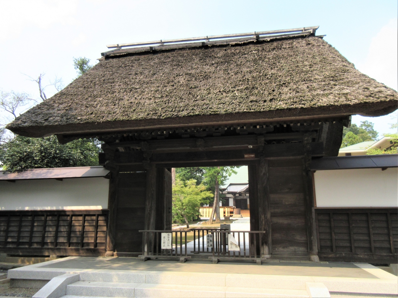 江戸時代前期に建てられた茅葺き屋根の山門は、市指定文化財になっています。- 旅行時期