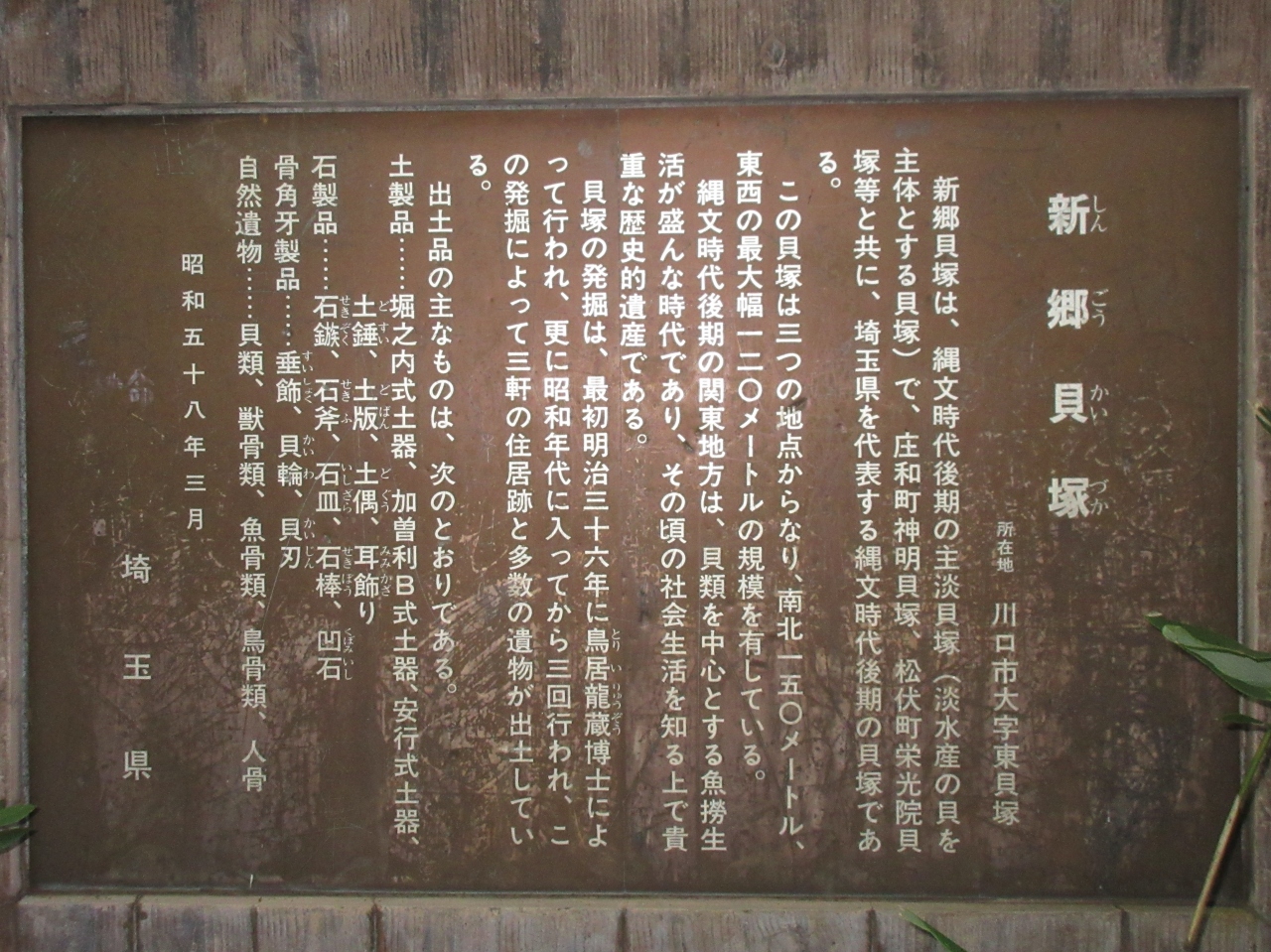 縄文時代後期から晩期のものらしい。現在はこんもりとした林が茂る丘のような感じです。解説板以外は「貝塚」らしいモニュメントもありません。