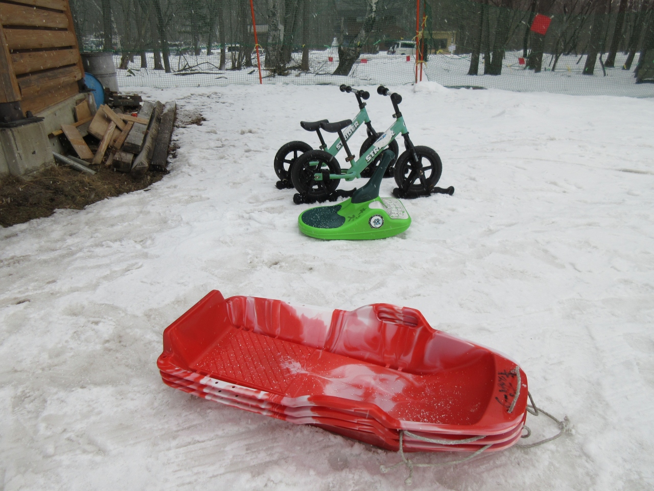 ソリは子どもだけでも親子と一緒でも滑れるように、無料で貸し出してくれます。