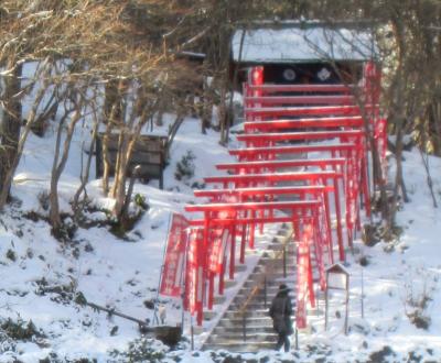 「西の河原公園」内にあって、「西の河原大露天風呂」に行く途中にあります。朱色の鳥居が十数本並んでいて、目立ちます。