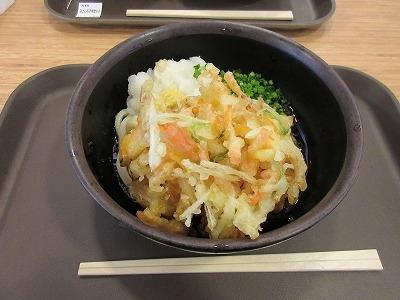 『かき揚げぶっかけうどん』を食べました。汁が少なめで、こしのあるうどんは、讃岐うどん風ということで、美味しくいただきました。