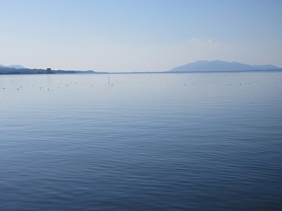 車で宍道湖を1周しました。夕陽が沈むときに一番美しい景色を見られる場所が「宍道湖夕陽スポット」です。宍道湖の東端で、国道9号線の松江警察署の前の湖畔になります。車はもう少し手前で左にそれて、湖畔沿いの道路を進むと駐車場があります。