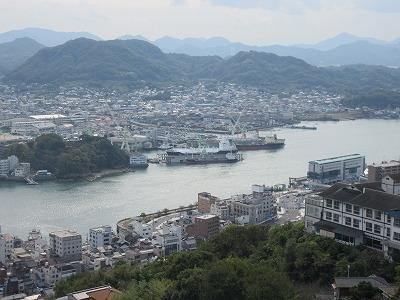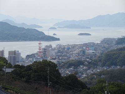 山頂の展望台からの見晴らしは抜群です。眼下に尾道の町と瀬戸内海を見晴らせます。左手には尾道大橋が見えて、しまなみ海道が右へと続く様子もよく見えます。
