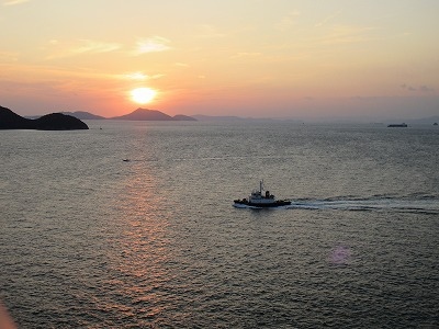 瀬戸内海の景色で感動的なのは、朝、昼間、日没時の中では、夕陽に輝く瀬戸内海の景色が目に焼き付いています。