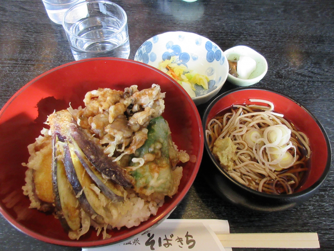 『5種の野菜天丼ミニそば付き』(1100円)を注文しました。