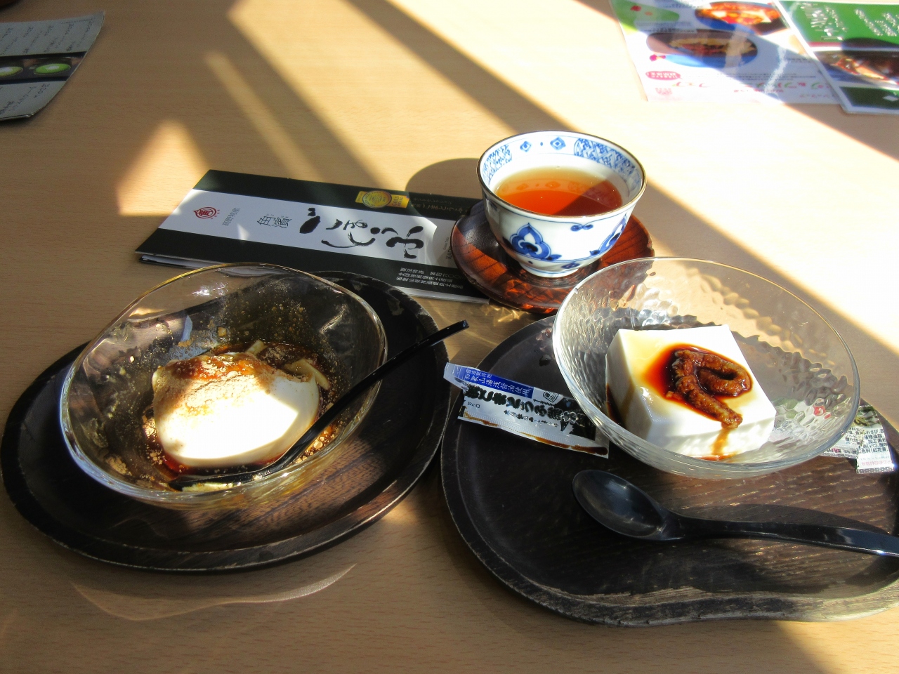 ごま豆腐に、わさびと醤油をかけて食べるのがお薦めと言われていただきました。ごま豆腐と、わさびと良く合うんですね。- 旅行時期
