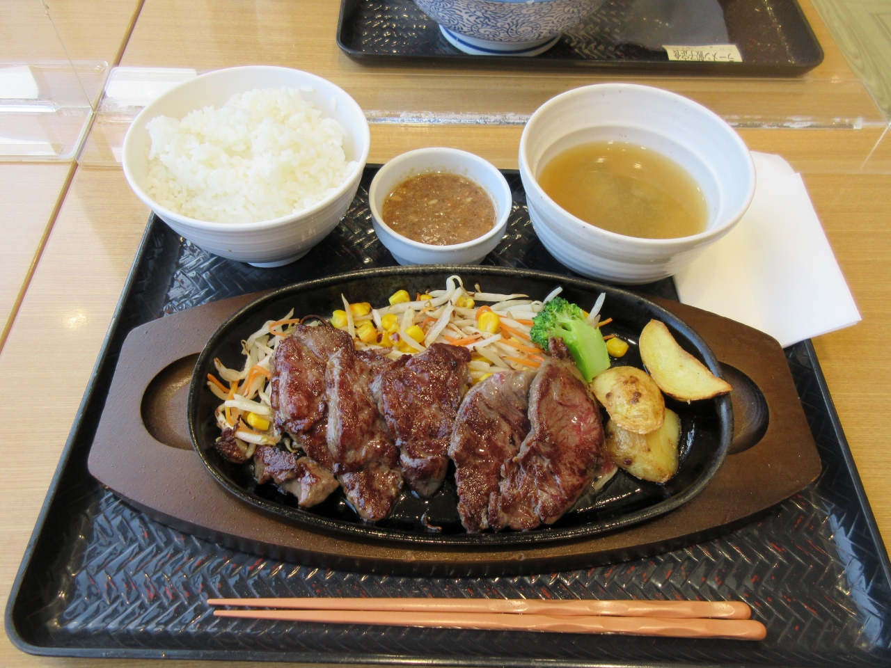 新東名の長距離ドライブで疲れた身体に栄養補給をしたいとフードコートを眺めていて、ここの『ステーキ定食』を選びました。十分に期待に応えてくれて、肉を美味しくいただけました。