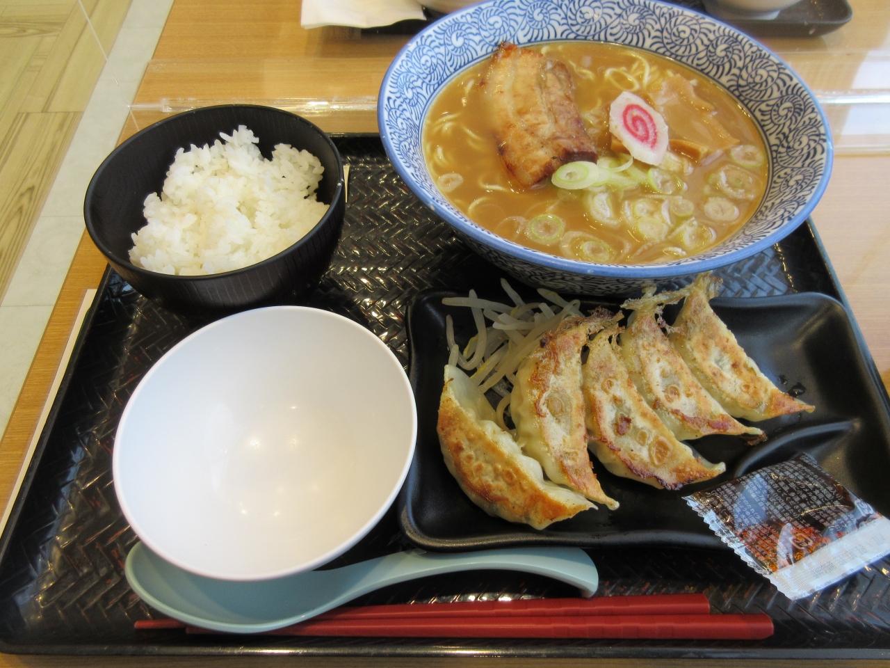 フードコートで一通り見比べて、ラーメンと餃子が食べたい、特に「浜松餃子」は外せないと思って、『炙りラーメンと餃子セット』に落ち着きました。