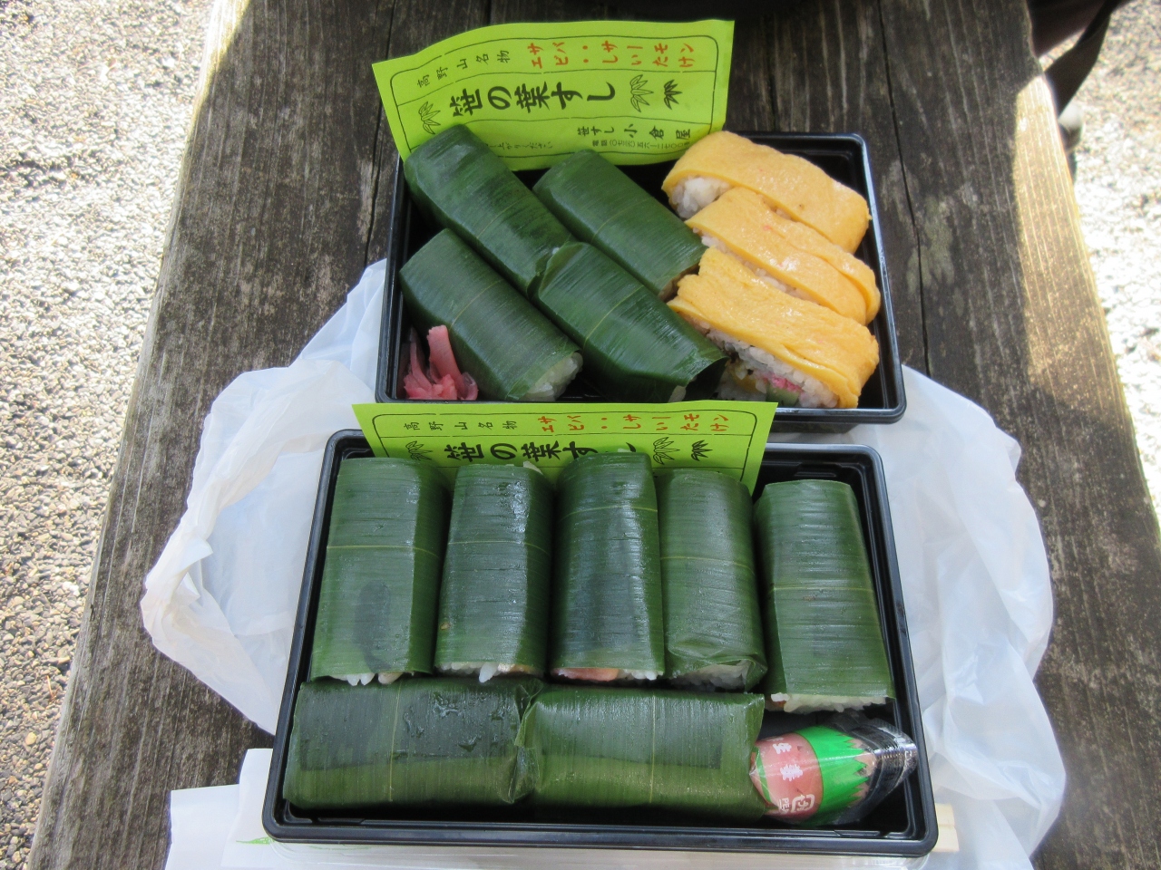 代わりに『さば寿司』と『こんにゃくいなり』『めはり寿司』を買って、「牛馬童子」まで行って、そこでいただきました。