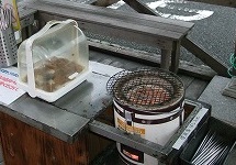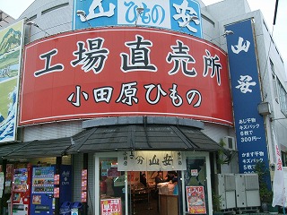 お店の前に七輪と2種類の干物があって、各自で干物を焼いて試食できます。この日はイカとカマスでした。塩気は少なめで、一夜干しのようにふっくらとしていて、ジューシーさが残っていて、味が濃かったです。ご飯やビールが欲しくなります。