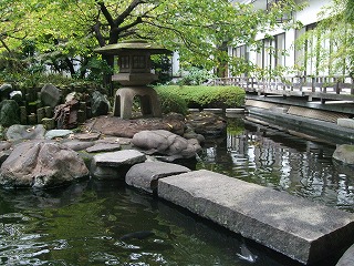 理由のひとつは、ロビーからも見える日本庭園が素晴らしく、鯉のいる池を中心に、小山、滝まであって、四季折々、様々な表情を見せてくれる樹木によって、目を楽しませてくれます。