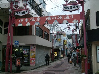伊東駅の駅前から南の松川に行く商店街で、湯の花通りにキネマ通りが続きます。