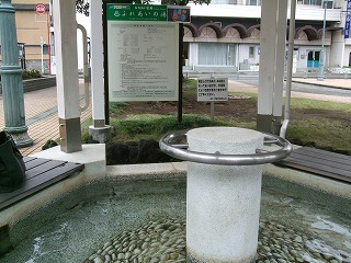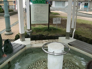 松川公園内の足湯所で、温泉街や遊歩道の散策で疲れた足を癒すのに便利です。