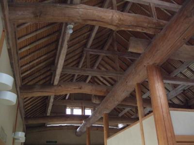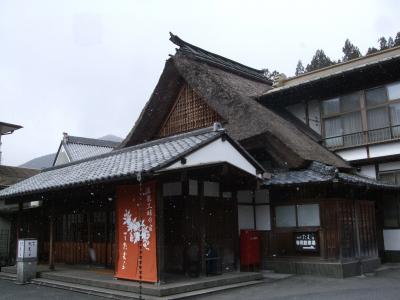 フロントのある建物は大きな茅葺き屋根の立派な建物です。中の梁も今では手に入らないような大木がふんだんに使われていて、とても魅力的な老舗宿です。