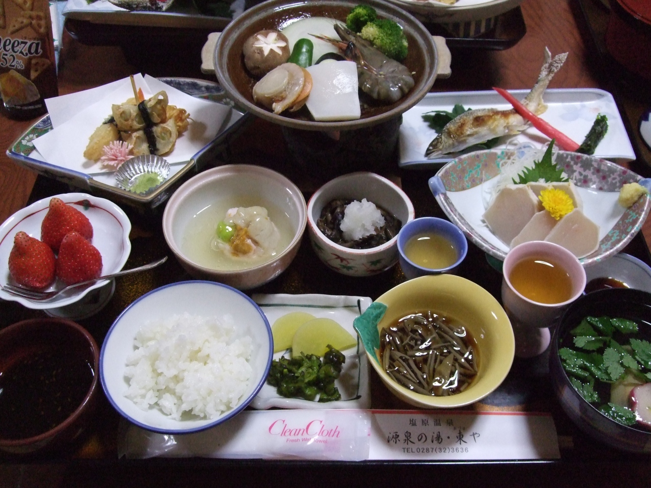 夕食は部屋食で、「牛肉陶板焼き」「日光湯葉」「マスの刺身」など12品あって、質も量もとても良かったです。