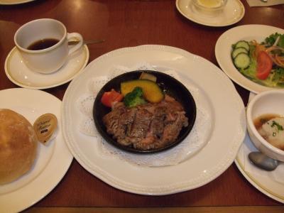 『アンガスビーフステーキ・ポン酢ソース』に、パン、コンビネーションサラダ、ドリンクバーを付けて食べました。2148円になりましたが、それに見合う内容でした。