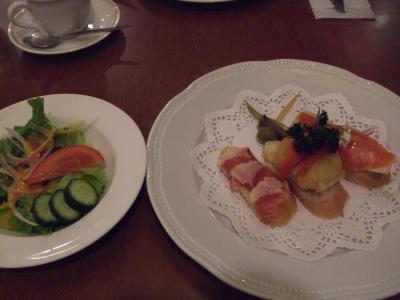 『ピンチョス』(842円)というオードブルも2人で食べました。オリーブや、イベリコハムが乗ったカナッペ、チコリとスモークサーモンが乗ったカナッペなど、4種類のオードブルがプレートに乗っていました。特にイベリコハムが食べたかったので、満足でした。- 旅行時期