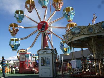 一番の特徴は奥にあるミニ遊園地で、観覧車やメリ-ゴーランドや子ども用乗り物が色々あります。