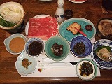 夕食は山形牛しゃぶしゃぶ、鮑酒蒸し、芋煮など豪華で丁寧な味付けの料理で大満足。