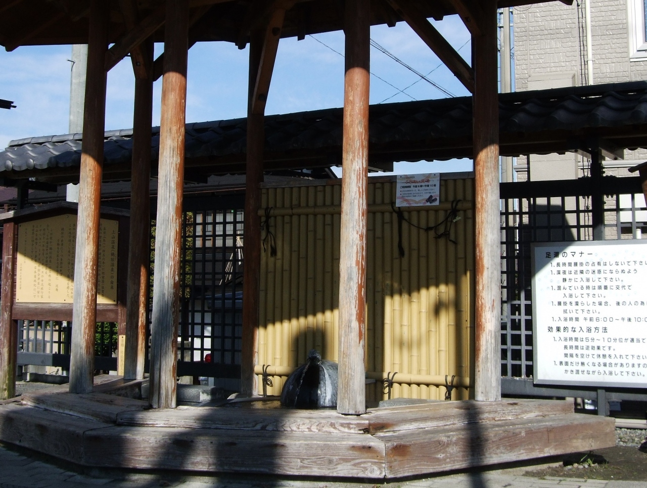 上山市内に5ヶ所ある足湯の1つで、どこも新しくて、清潔で、気持ちが良いです。