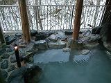 蔵王の硫黄泉があふれる大浴場、総檜風呂と岩風呂の2つの露天風呂に、朝まで入れます。