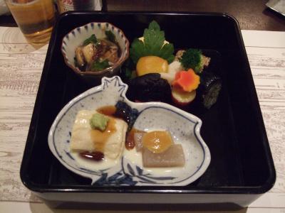 お豆腐、湯葉、野菜の炊き合わせに、ご飯と赤だしの味噌汁が付きました。お豆腐は柔らかく、大豆の風味がしっかりしています。湯葉は、独特の食感と、浸みたお出汁の味がとても上品で美味しいです。炊き合わせも、1つ1つの具材をそれぞれ炊いて、1つの椀に盛りつけるわけで、それぞれの食材の食感の味がきちんと舌に伝わってきました。- 旅行時期