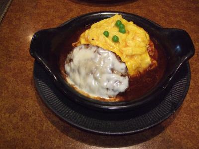 しっかり、ガッツリ食べたいと思って、2人で「150gハンバーグチーズフォンデュ・ディッシュ」(840円)と「オム・デミ・ライス」(1142円)を食べました。