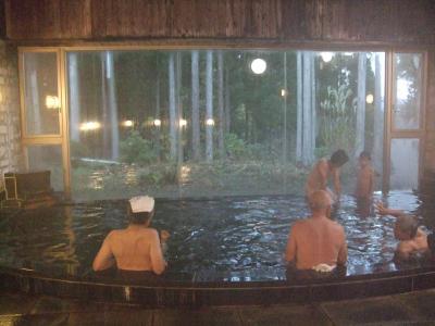 肌に良い温泉ですが、露天風呂はありません。でも、一面が大きなガラス張りの明るい大浴場があります。朝の9時まで深夜も入れるのが嬉しいです。大浴場の前に、無料のマッサージチェアや、浅間山水系の美味しい水が出る給水器もあります。