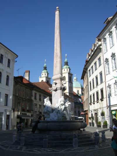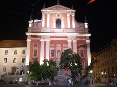 17世紀に建てられたピンク色のフランシスコ教会があるし、横を流れるリュブリャニッツァ川には三本橋がかかっています。広くはない広場に、昼間も人が多いですが、夜も多くの人が出ています。あらゆるものがライトアップされて、夜の方が綺麗で、思い出に残っています。- 旅行時期
