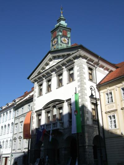 プレシェーレン広場から三本橋を渡って、リュブリャーニャ城に向かうと、すぐに市庁舎に突き当たります。