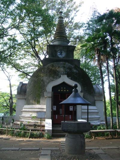 上野公園内の小山の上に釈迦如来像の大きなお顔だけあります。お顔は、小山の中心にあるパゴダ(仏塔)を向いています。パゴダの本尊は薬師如来で「当病平癒」を祈願して、心と体の病を癒すとされています。