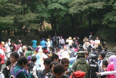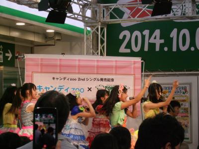 サンシャイン通り沿いにあって、便利な立地です。8階建てで、1階はエントランスホール&イベント会場に使われたりします。この日は、女子ユニットのミニコンサートをやっていて、追っかけ「おたくの人たち」も盛り上がっていました。