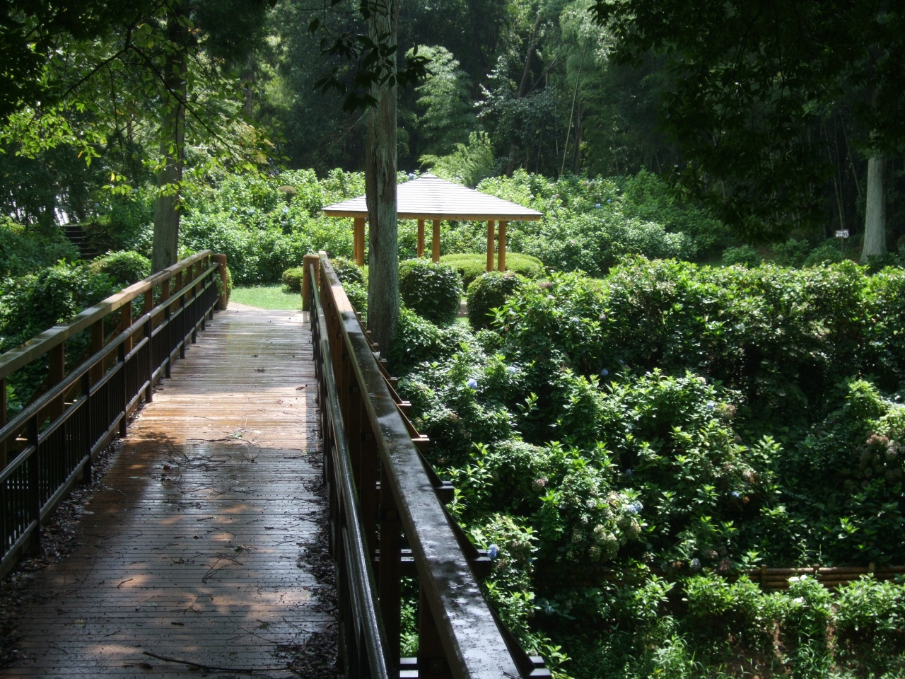四季折々様々な樹木や植物の花が見られます。中でもアジサイがたくさん植えられていて、6月から7月には咲き誇って見事で、アジサイ祭も開催されています。憩いの場所にもなっています。- 旅行時期
