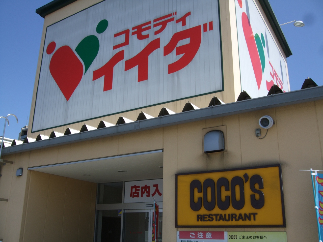 水戸街道沿いのコモディイイダの2階がCOCO'Sです。2階が自動車の駐車場になっていて、建物に入るとすぐに、COCO'Sの入口があります。パーキングゲートそのものがないので無料で、時間制限もありません。時間を気にすることもないのが一番嬉しいです。レストランで、ドリンクバーを頼めば、気兼ねしないで何時間でもいられます。